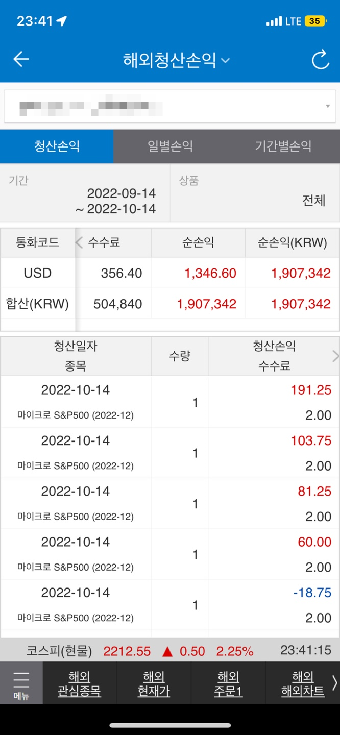 S&P micro 4계약 어치, 640만원에 혹시 모를 손절 대비하여 700만원의 시드로 1달 매매하여 그래도 수익으로 마무리하였다. 앞선 2주는 350, 2계약 어치로 매매했으니, 평균 내서 525만원으로 월 수익률 약 35% 퍽 괜찮은 것 같다... 그러나 이 돈은 내 돈이 아니고, 항상 조심해야하며 하루에 천원만 벌자, 1%만 수익 내자는 마인드로 조심조심 또 조심해야 할 것 같다.
