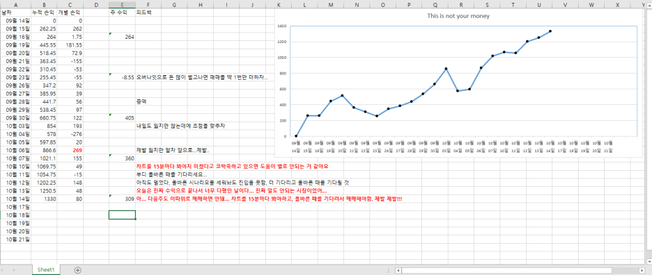 *9/14~10/14 매매 결산, 평균 시드 525만원
